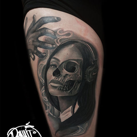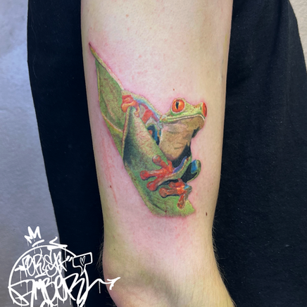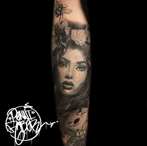 My work is rooted in realism, always filtered through my own personal style. I like blending rap subculture and nostalgic 90s pop culture with classic tattoo traditions. I enjoy creating bold, timeless tattoos just as much as pushing ideas into something more playful, unexpected, or slightly surreal.